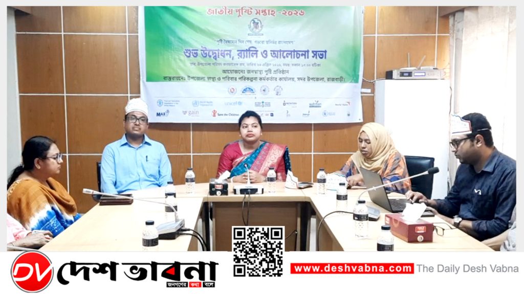 “পুষ্টি বৈষম্যের দিন শেষ, গড়বো স্বনির্ভর বাংলাদেশ” এই স্লোগানকে সামনে রেখে রাজবাড়ী সদর উপজেলায় বর্ণাঢ্য আয়োজনে জাতীয় পুষ্টি সপ্তাহ-২০২৬ এর শুভ উদ্বোধন করা হয়েছে।