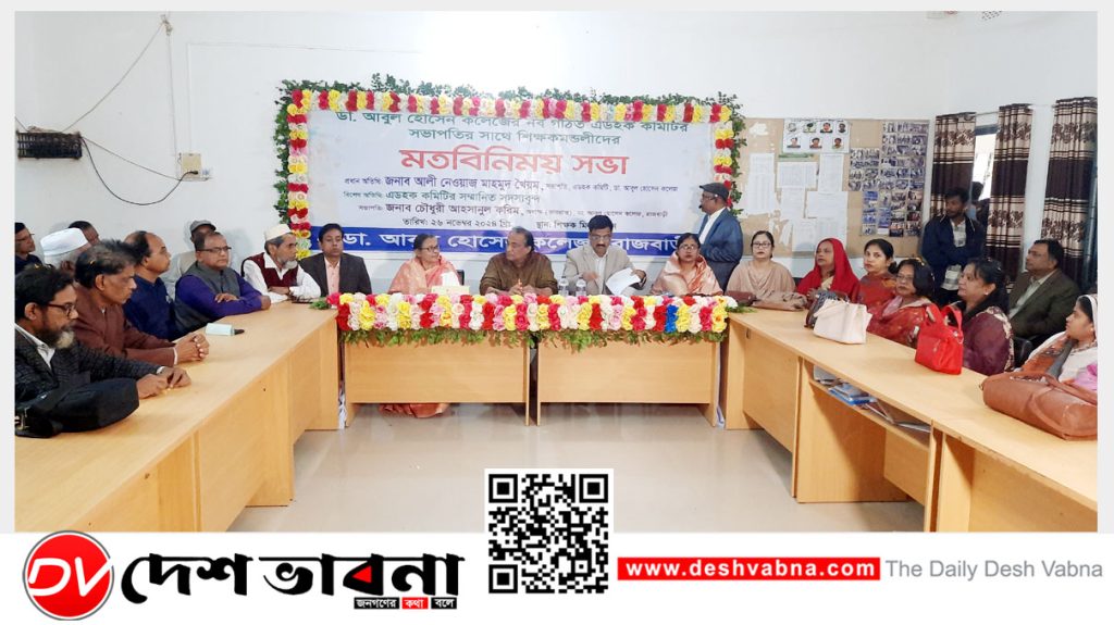 মঙ্গলবার (২৬শে নভেম্বর) দুপুরে ডাঃ আবুল হোসন কলেজের প্রশাসনিক ভবনের নিচতলায় শিক্ষক মিলনায়তনে এ মতবিনিময় সভার আয়োজন করা হয়।