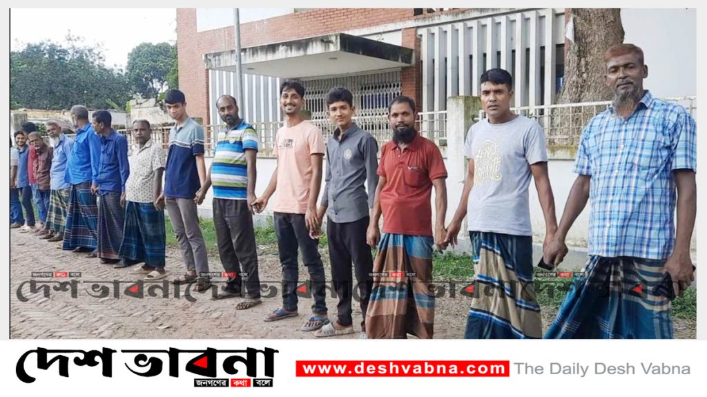 শনিবার (২৪শে আগস্ট) বিকেলে বালিয়াকান্দি উপজেলার ইসলামপুর ইউনিয়ন পরিষদের সামনে ঘন্টা ব্যাপী এ মানববন্ধন কর্মসূচির আয়োজন করা হয়। এ মানববন্ধন কর্মসূচিতে ভুক্তভোগীরা সহ ইউনিয়নের ৯নং ওয়ার্ডের কয়েকশত সাধারণ মানুষ অংশ গ্রহণ করেন।
