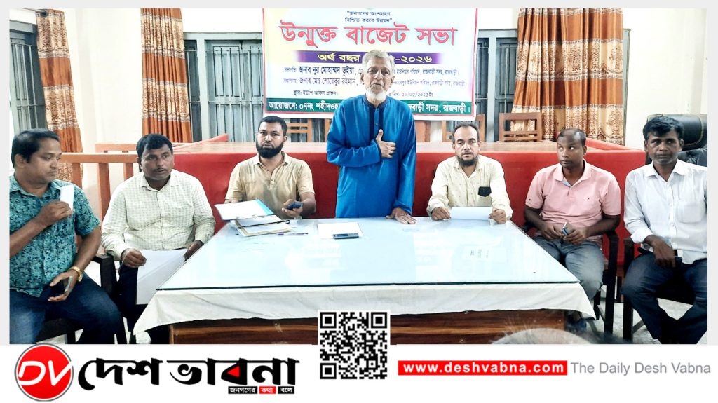 ‘জনগণের অংশ গ্রহণ, নিশ্চিত করবে উন্নয়ন’ এই প্রতিপাদ্যকে সামনে রেখে রাজবাড়ী সদর উপজেলার শহীদওহাবপুর ইউনিয়ন পরিষদ ২০২৫-২৬ অর্থ বছরে উন্মুক্ত খসড়া বাজেট সভা হয়েছে।
